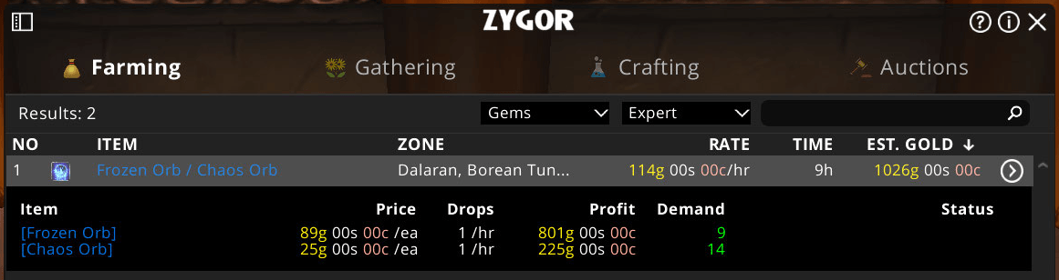 Zygor's Gold and Auctions Guides provides a number of tools to help you with selling your farmed items.